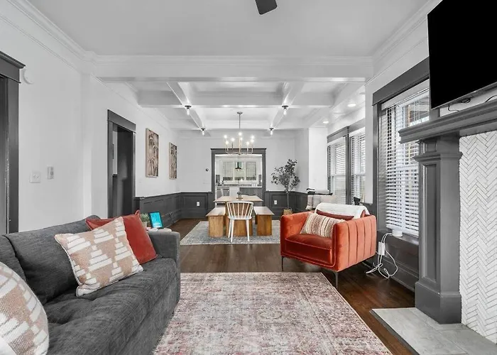 A propriedade no bairro Midtown - Westport em Kansas City está situada a 25 minutos a pé de Museu de Arte Nelson-Atkins e a 30 minutos a pé dos locais comerciais como o Centro Comercial Crown Center. Se pretender visitar os arredores, visite Power and Light Building a uma distância de 4.4 km desta casa de férias. A Walnut Remodeled Modern 5Br Home Walkable King Bed está a aproximadamente 35 minutes a pé dos locais adequados para famílias, como o Aquário Sea Life.